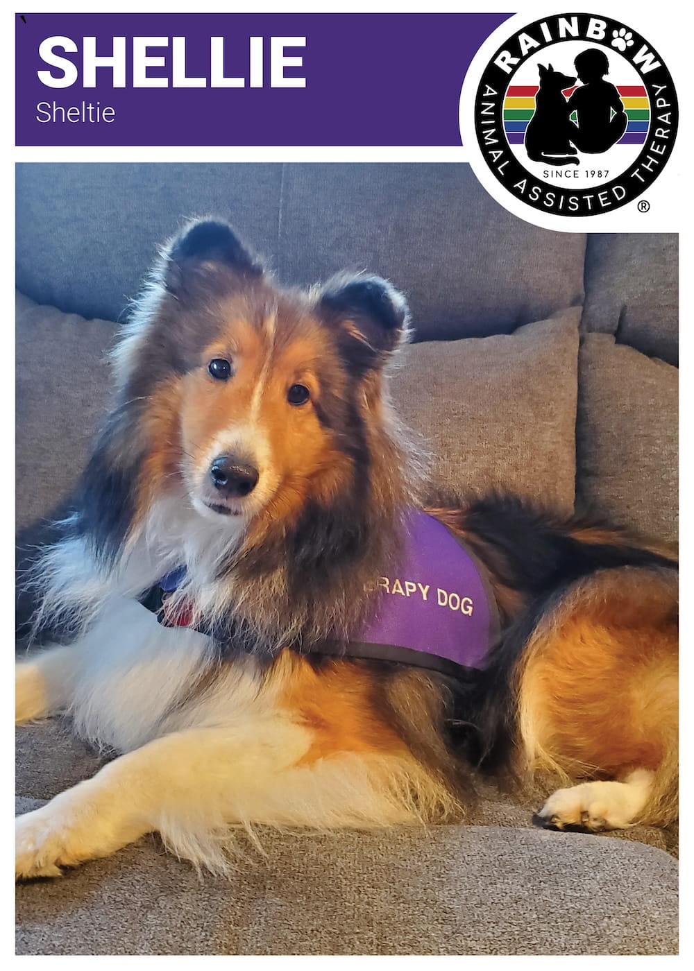 Meet Shellie Certified Rainbow Animal Assisted Therapy Dog since 2016 Shellie SPONSORED BY PMRG Community Advocate Sponsor since May 2024 Join Sponsorship Back to List Name: ShellieBreed: SheltieBirthdate: January 9, 2015Date Certified: April 16, 2016 Favorite Toy: PuzzlesFavorite Activity: Visiting the children at the hospital, and playing fetch Become a Volunteer APPLY NOW Sponsor a Rainbow Dog MEET OUR DOGS Request a Program GET STARTED Make a Difference DONATE NOW