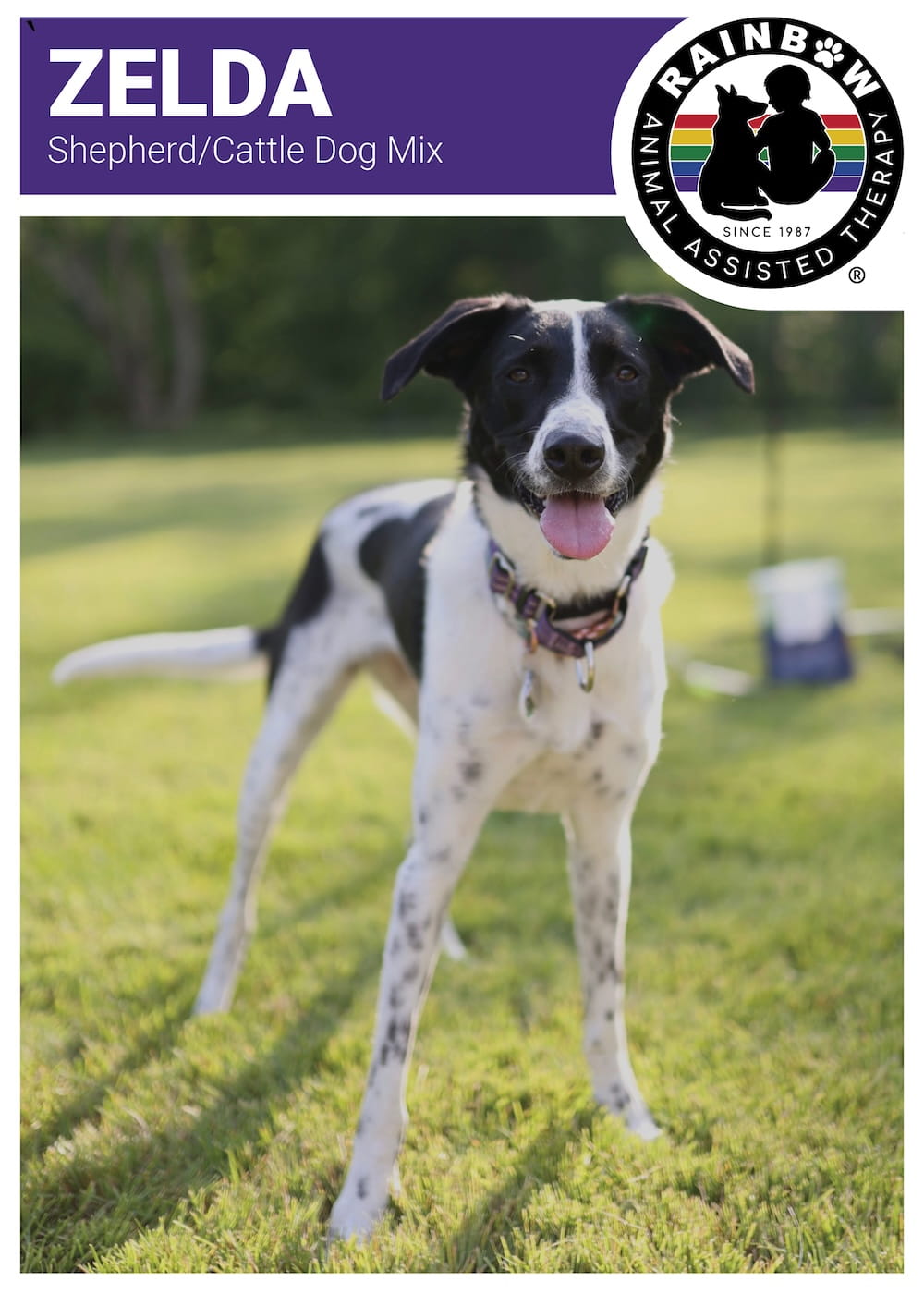 Meet Zelda Certified Rainbow Animal Assisted Therapy Dog since 2025 Zelda SPONSORED BY THE REHER & PASTERNOCK FAMILIES In loving memory of Nan Pasternock Community Supporter Sponsor since November 2025 Join Sponsorship Back to List Name: ZeldaBreed: Shepherd/Cattle Dog MixBirthdate: June 6, 2022Date Certified: May 22, 2025 Favorite Toy: PuzzlesFavorite Activity: Going for walks, playing catch, and playing fetch Become a Volunteer APPLY NOW Sponsor a Rainbow Dog MEET OUR DOGS Request a Program GET STARTED Make a Difference DONATE NOW